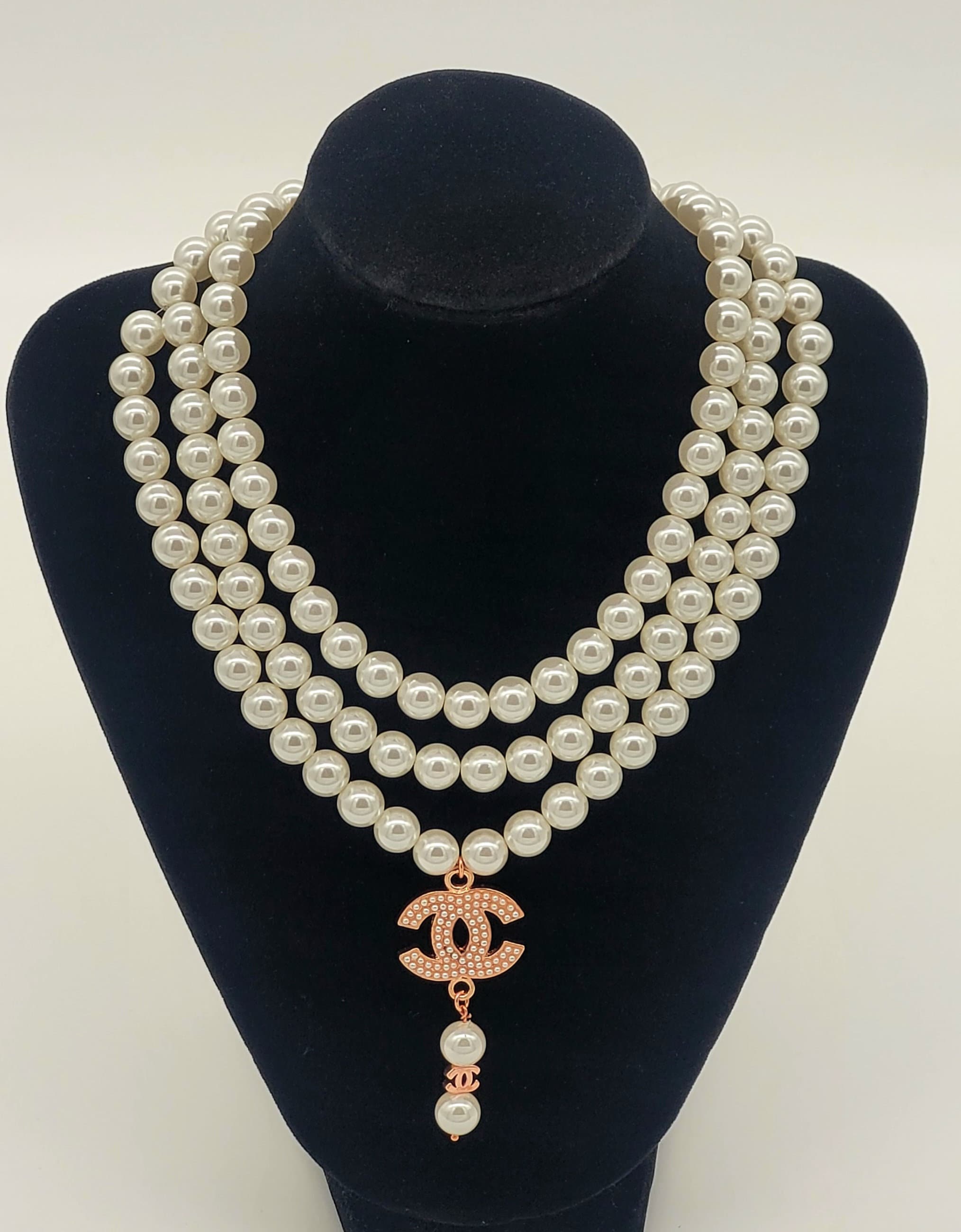 This listing is a build your own custom Coco Channel necklace. We offer both fresh water mother of pearl pearls, and high quality natural fresh water pearls. The difference between the two is that mother of pearl is grown in a different area of the clam then the natural freshwater pearl which is rarely naturally round in nature. Pendants are all gold plated with cubic zirconia and/or freshwater pearls.