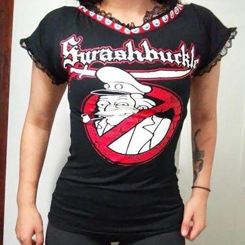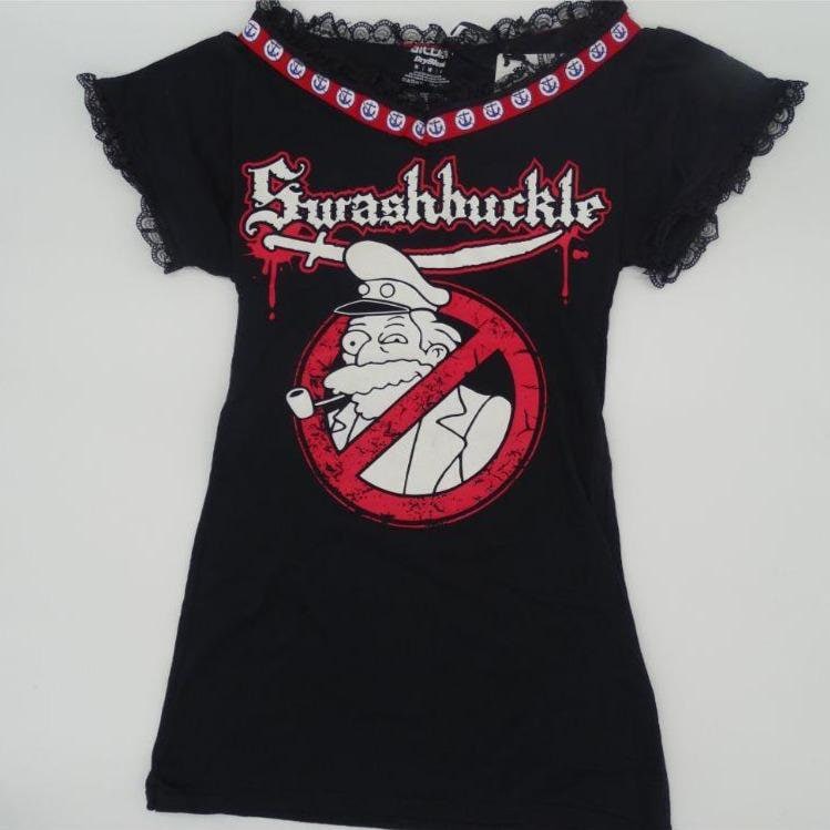 This modded swashbuckle t-shirt. It's made from a licensed tshirt. Fits a women's small to x small.